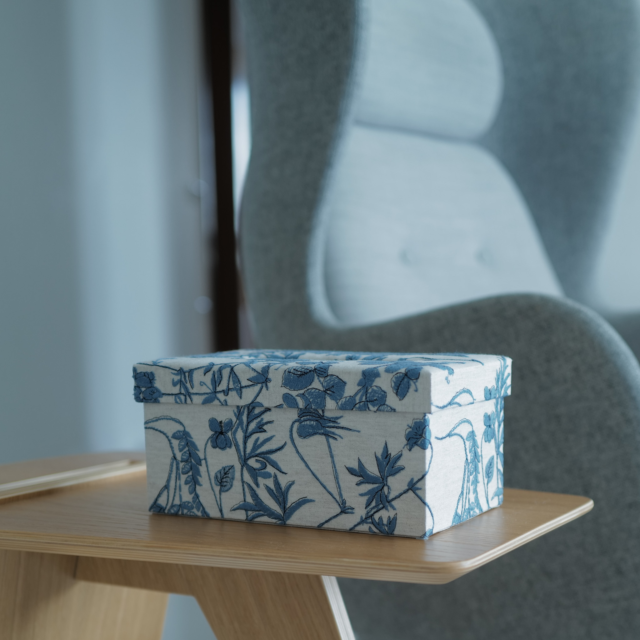 A tissue box is one of the most frequently used items at home, so why not choose one that enhances your space? This elegant piece is handcrafted by Takako Tanaka, an artist from Japan, using premium Japanese embroidered fabric. Designed to discreetly cover brand logos, it also blends beautifully with the colors and style of your interior. This botanic edition is exclusive for Singapore customers who love Plants. Make your space more botanic!